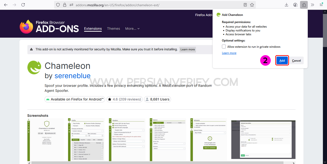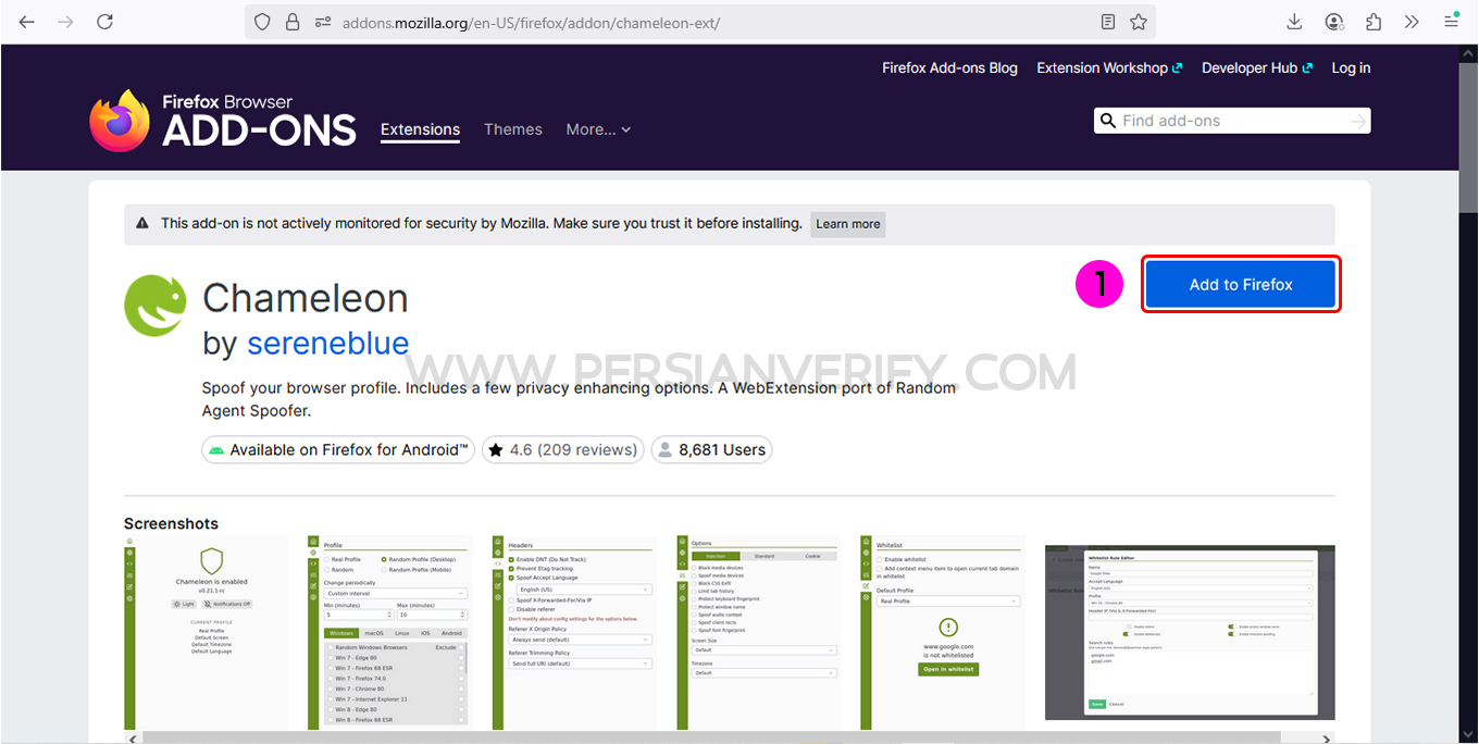 برای نصب افزونه Chameleon، میتوانید اینجا کلیک کنید تا به صفحه اصلی دانلود افزونه هدایت شوید.