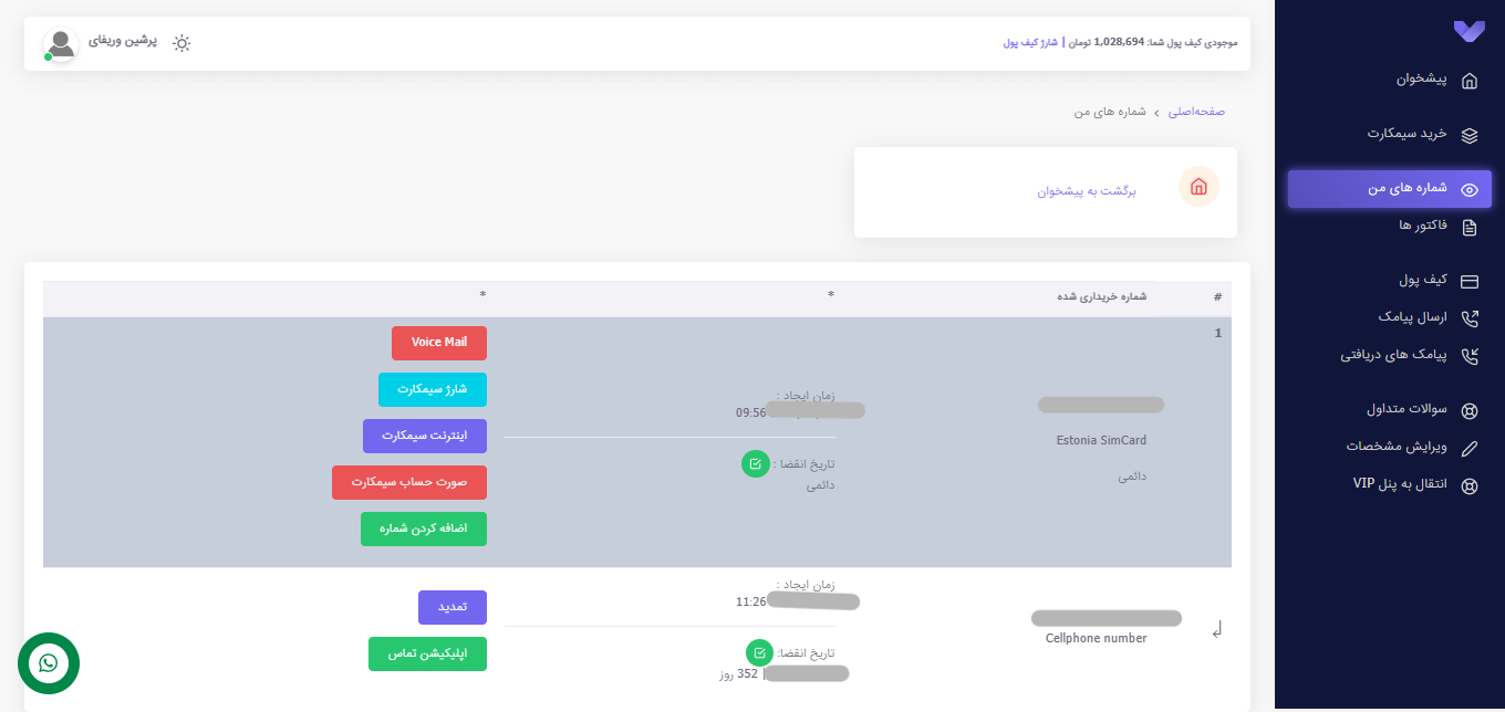 - مدیریت شماره دائمی سیمکارت و سایر شمارههای متصل به آن.